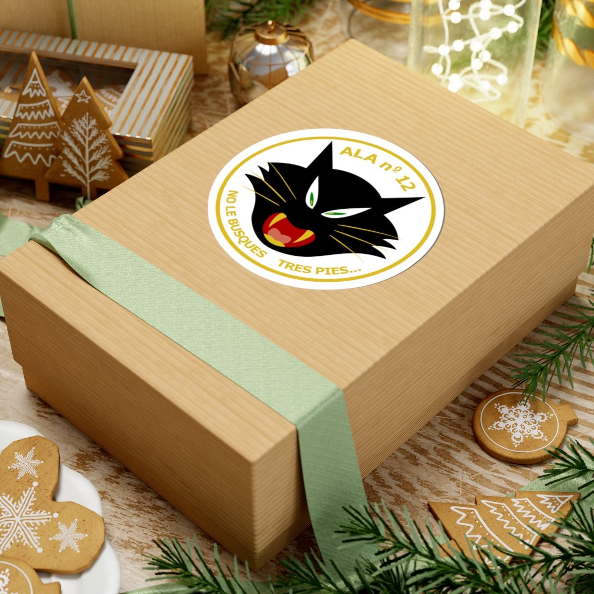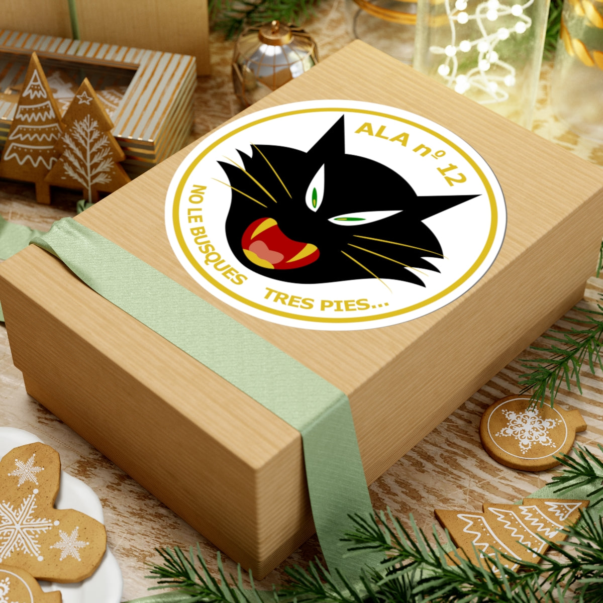 This striking sticker presents the iconic emblem of Ala 12, a wing of the Spanish Air and Space Force. The design centers around a menacing black cat, stylized into a fierce, expressive head.
