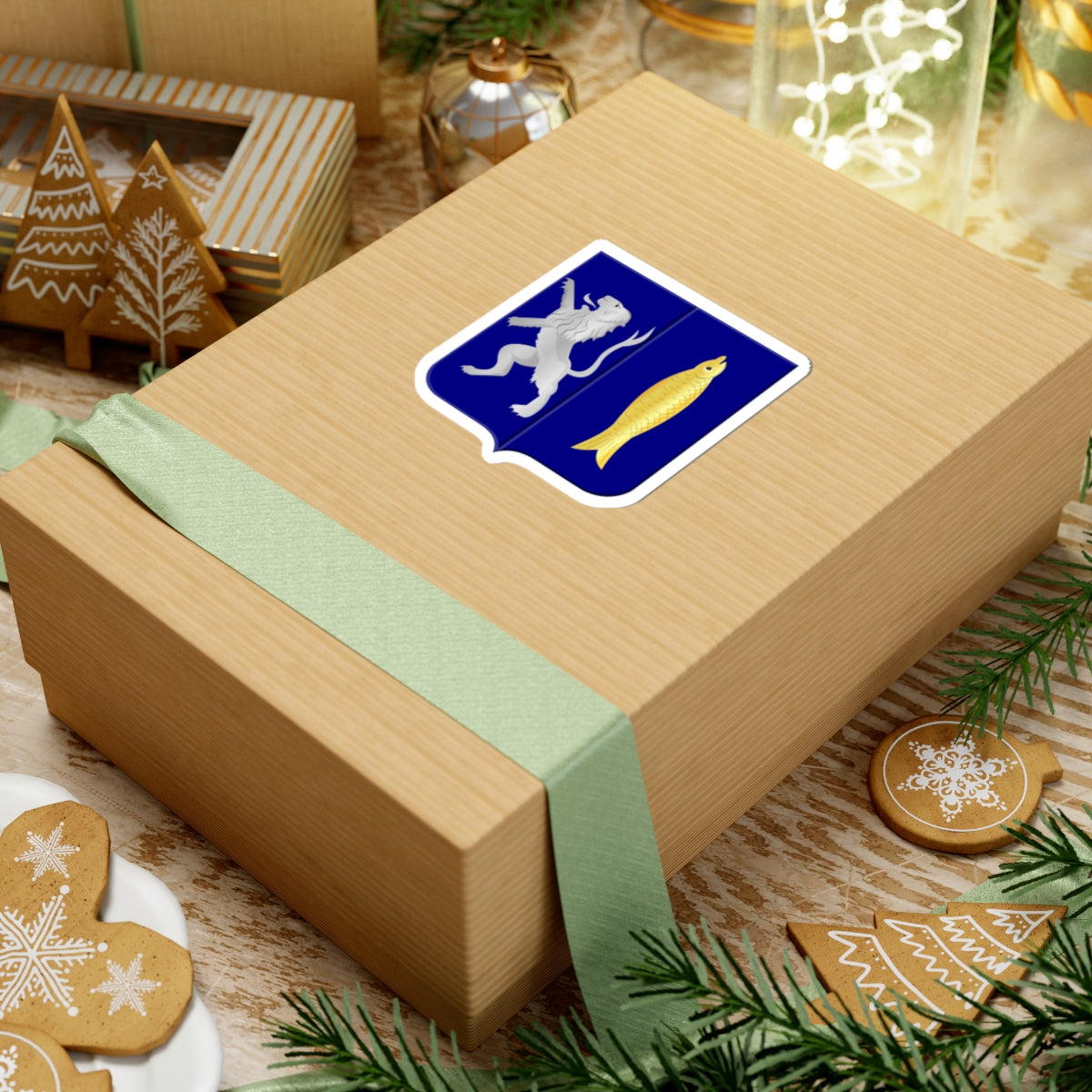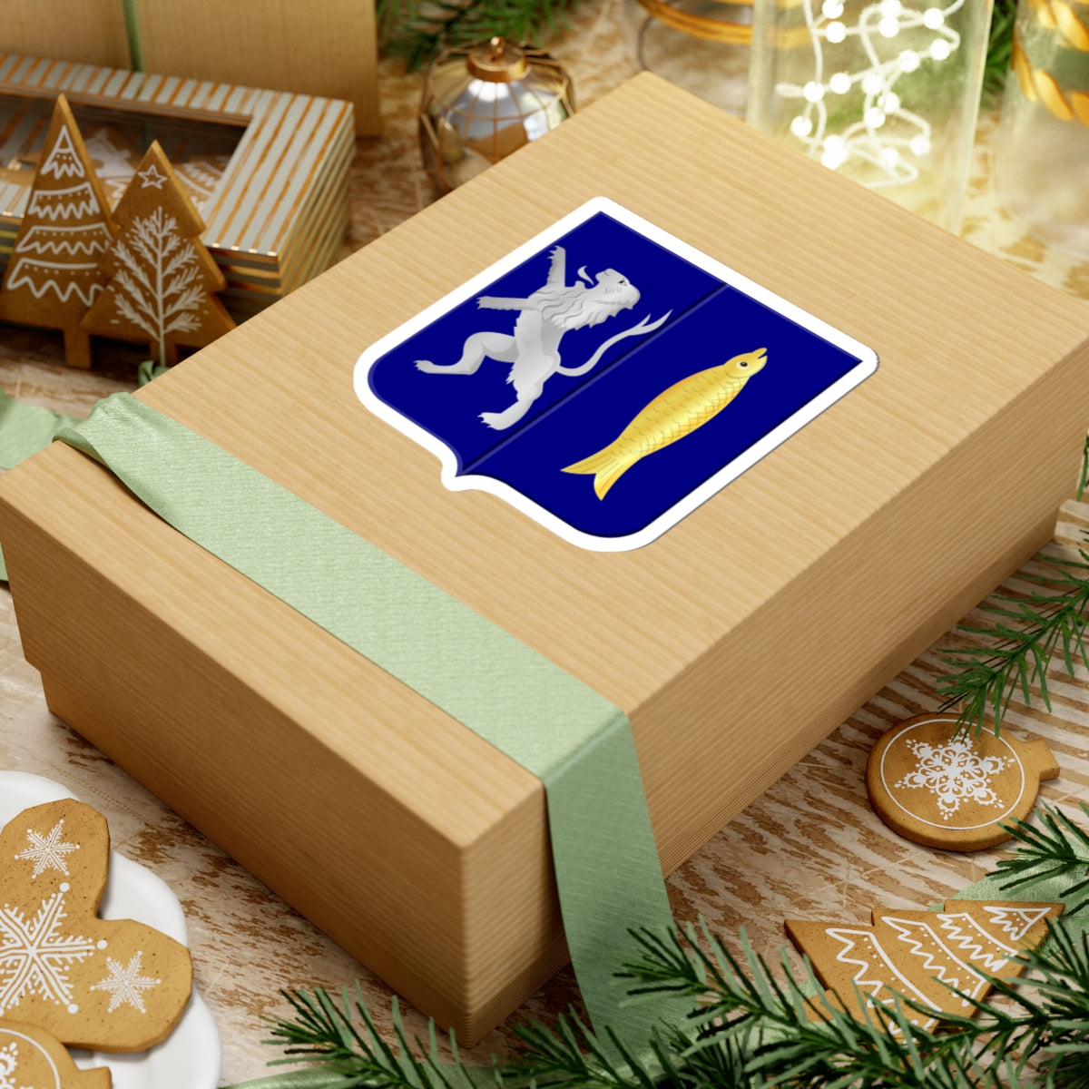 The coat of arms encapsulates the rich history of Ammerstol. The lion represents strength and the salmon references the historical significance of fishing in the area. This design is a visual testament to the town's heritage, all elegantly encapsulated within the classic heraldic structure.
