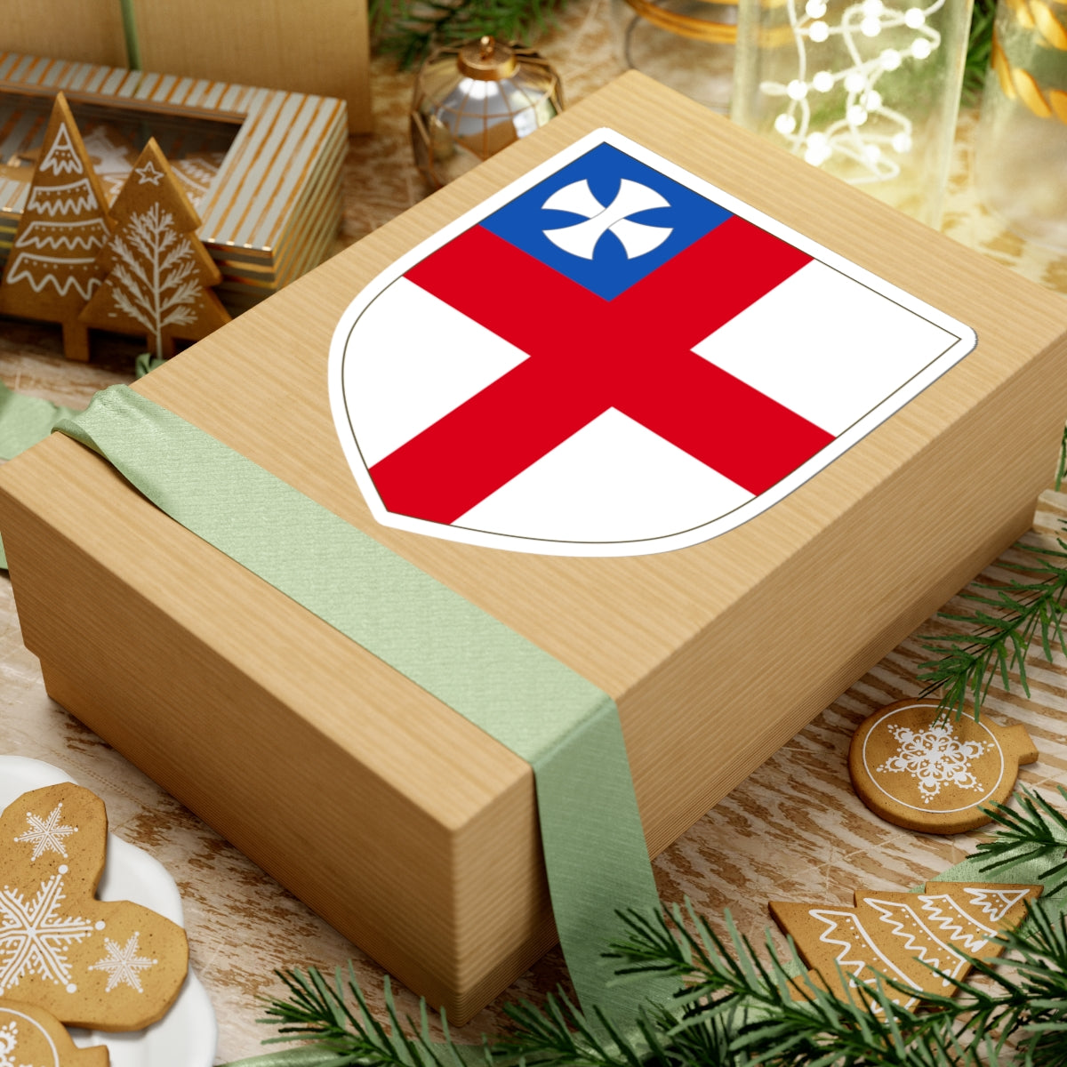 This vinyl kiss-cut decal showcases the heraldic representation of the Anglican Church in America (ACA). Due to the nature of the information provided, it's presumed the sticker design represents the ACA and not a specific jurisdiction within the United Kingdom. However, as the design details of the ACA's official coat of arms are unavailable, the sticker would presumably incorporate elements typical of Anglican heraldry, informed by knowledge of Anglican traditions.