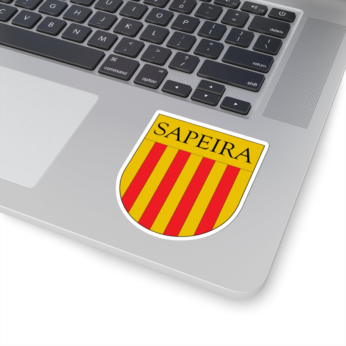 This decal showcases the historic coat of arms of Sapeira, a former municipality in Catalonia, Spain. The design is a vibrant representation of Catalan heraldry and local identity.