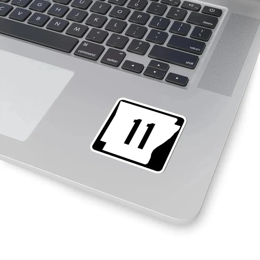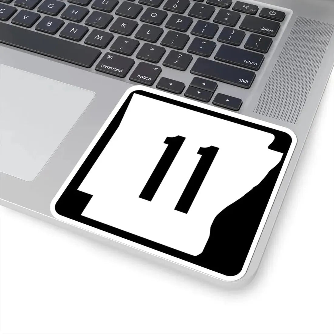 This sticker features the iconic road sign for Arkansas Highway 11, immediately recognizable to those familiar with the state's roadways.