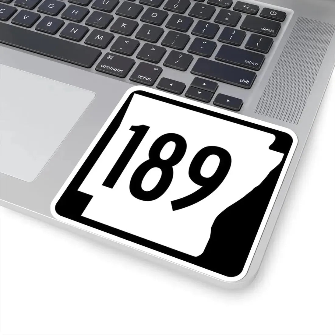 The sticker is shaped like the familiar outline of the state of Arkansas itself. This immediately grounds the design in its geographic context, proudly displaying the state's shape. The inclusion of the route number "189" within this outline personalizes the design, pointing to a specific road and a slice of Arkansas's infrastructure.