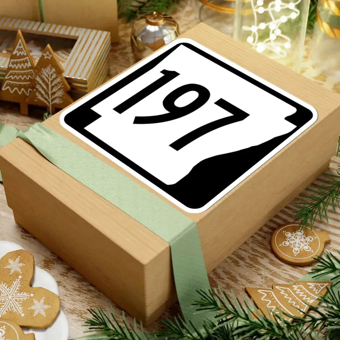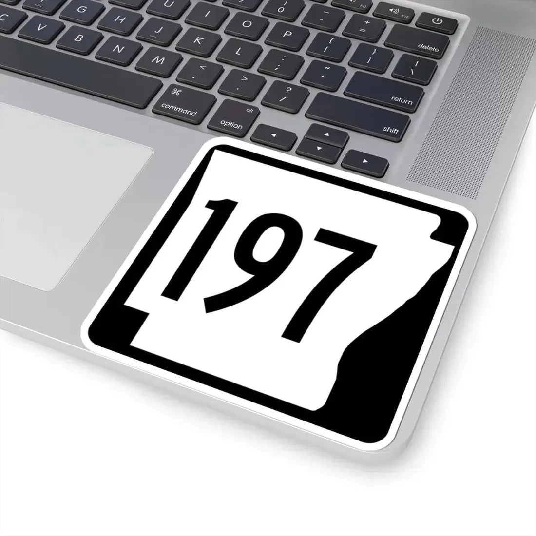 Prominently displayed within the Arkansas outline are the black numerals "197." These numbers denote Arkansas State Highway 197, a specific road within the state's transportation network. The placement of the numbers in the center of the state emphasizes the importance of the road and its connection to the overall state geography.