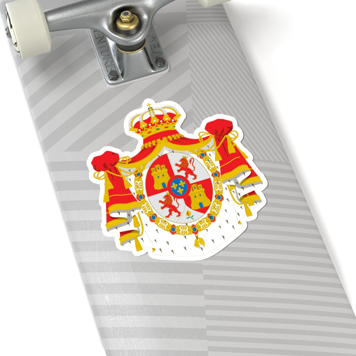 This vinyl kiss-cut decal showcases a striking depiction of the "Armas abreviadas del Rey de España antes de 1868," the abbreviated coat of arms of the King of Spain as used prior to the 1868 revolution. The design is a powerful statement of historical heritage and regal symbolism.