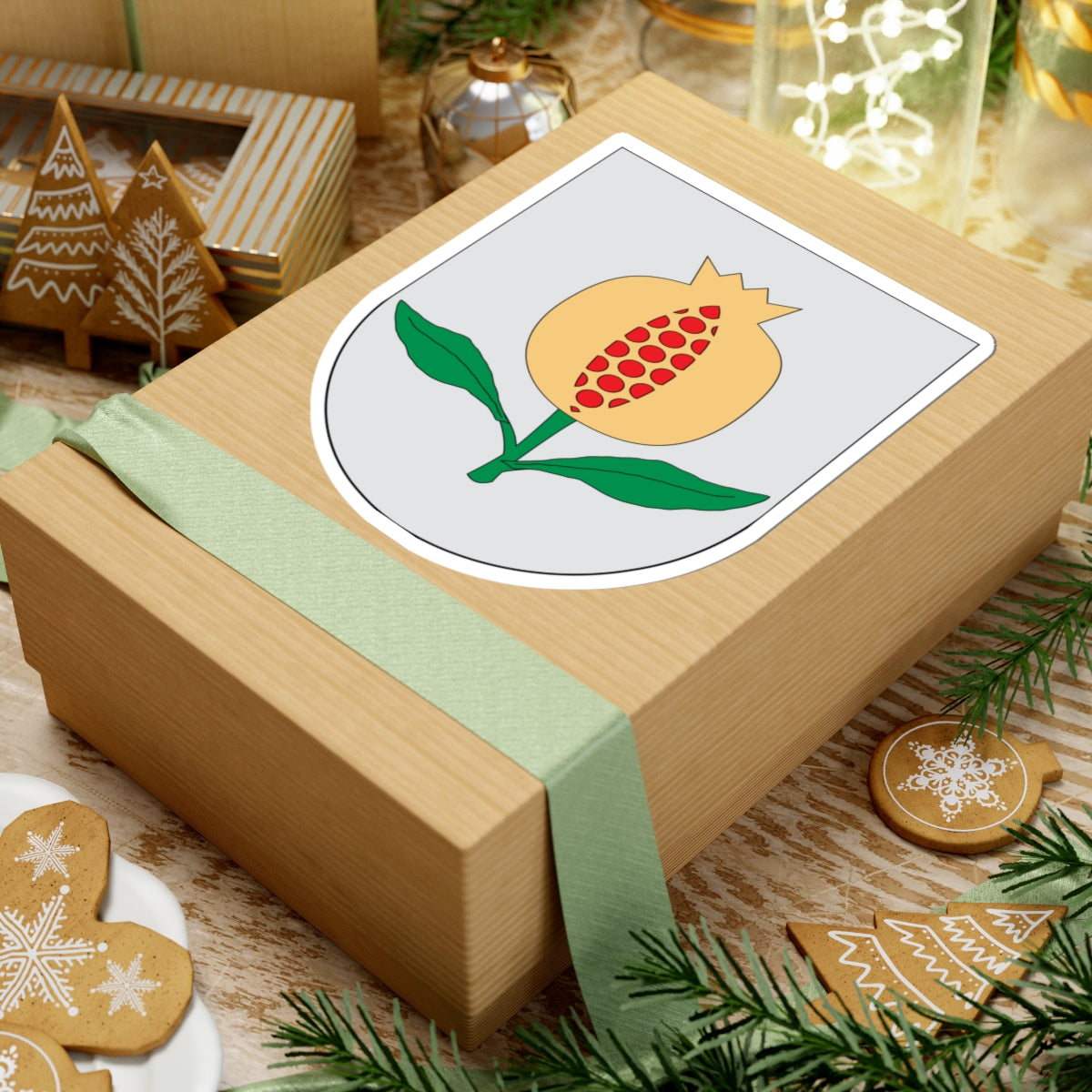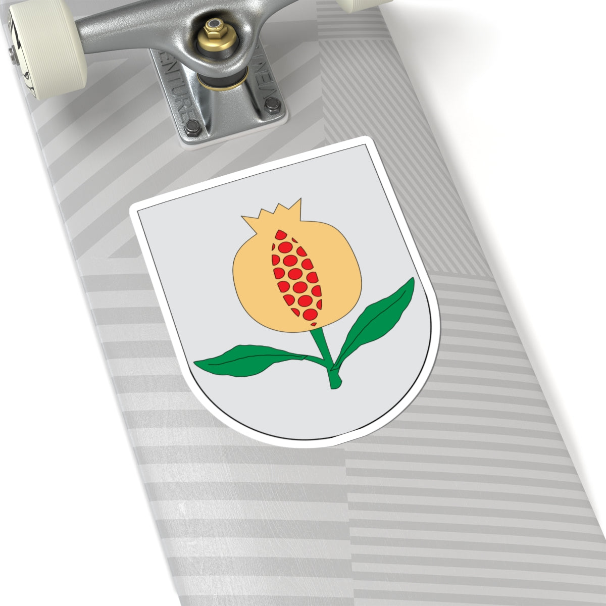 The pomegranate is often depicted with a striking red fruit and lush green leaves, a color palette that brings the design to life. This depiction often contrasts against a silver or white background, further highlighting the vibrant hues and ensuring the symbol's visibility.