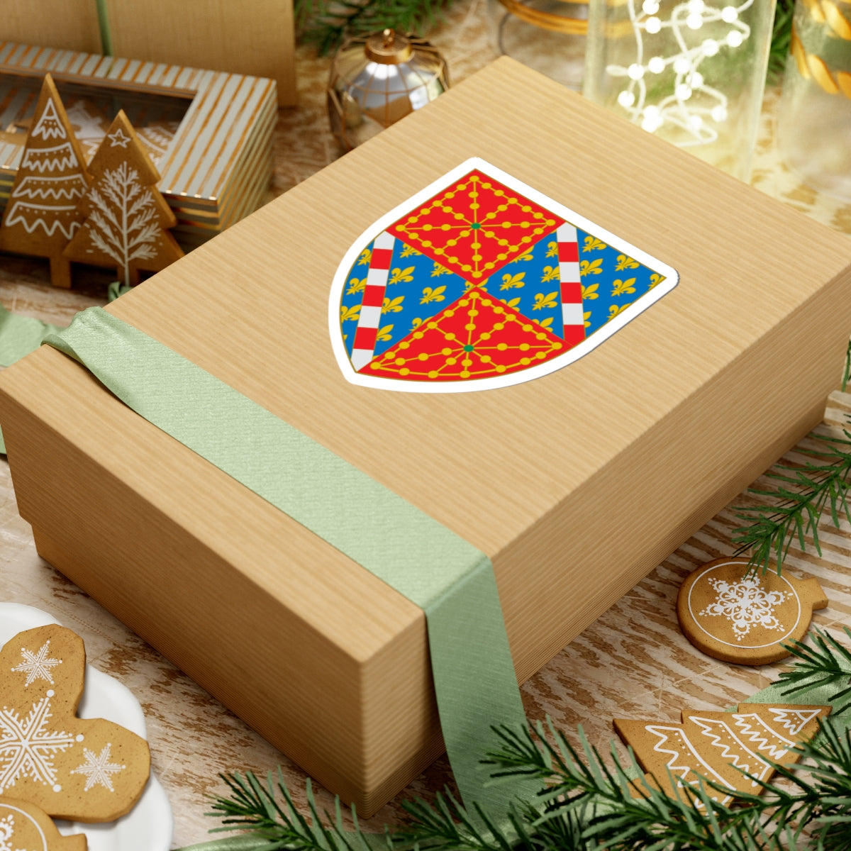 The second and third quarters present the arms of Évreux, a heraldic design historically associated with the Counts of Évreux. Typically, this quarter features azure (blue) with fleurs-de-lis and a bend compony argent (silver) and gules (red), further representing the union of the two houses.
