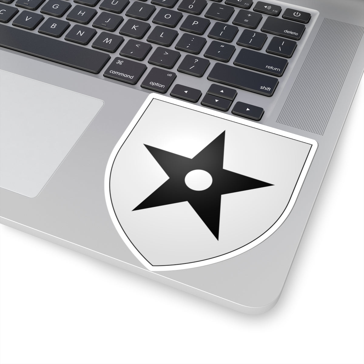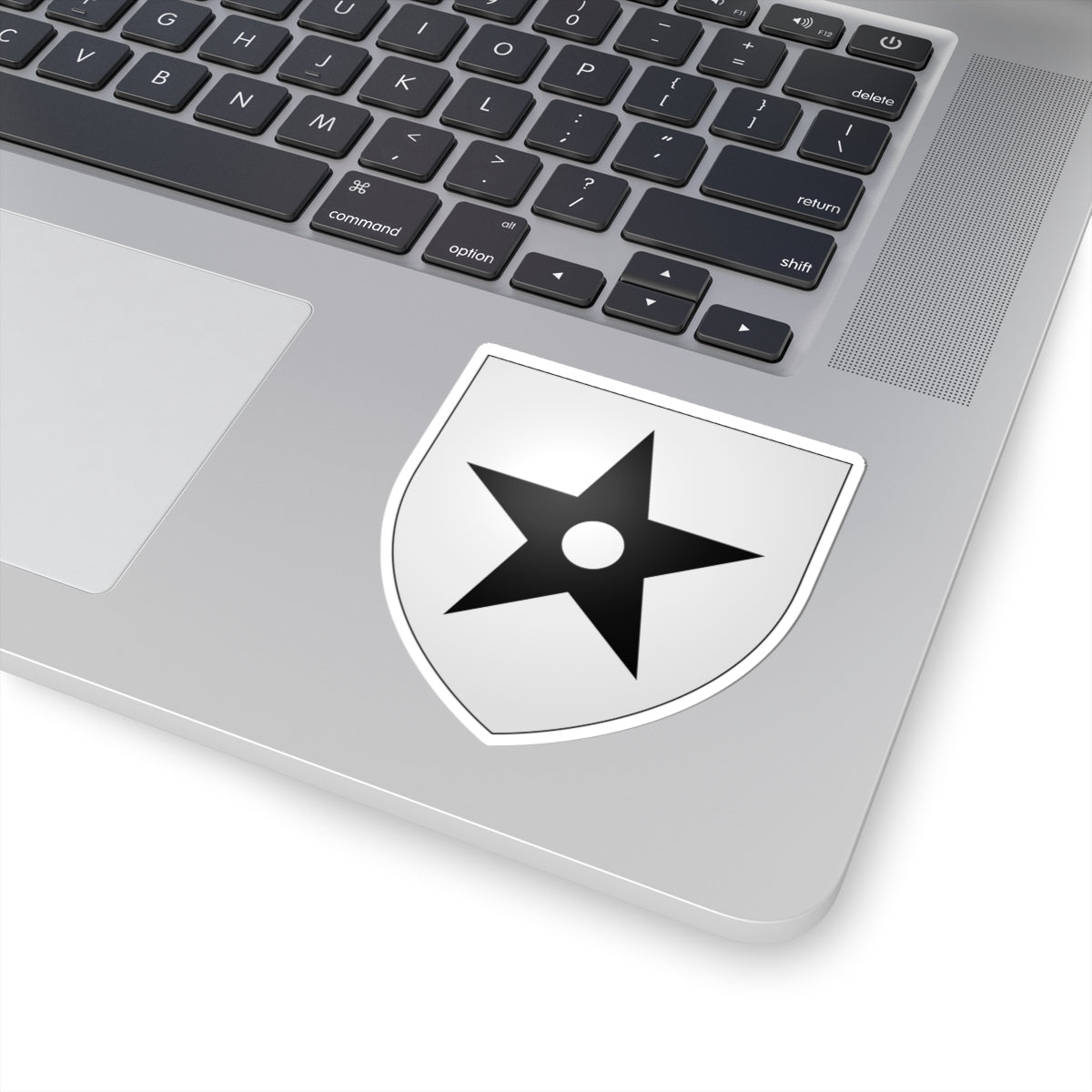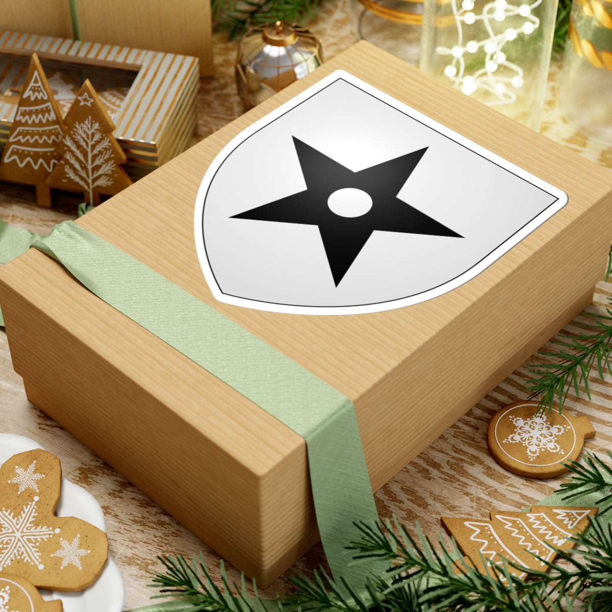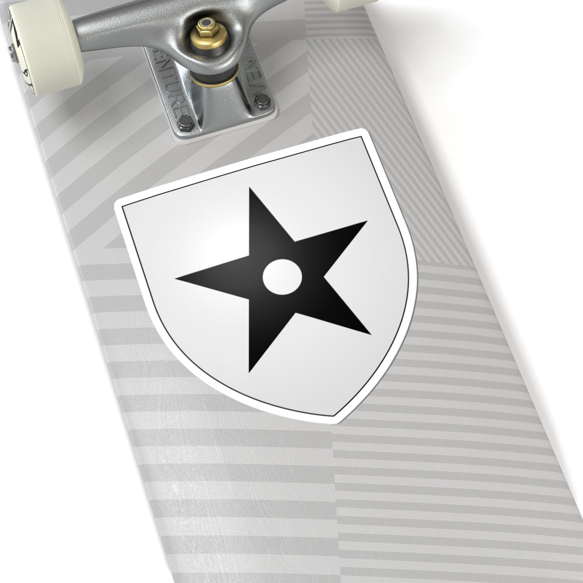 The heraldic star signifies honor, achievement, or divine qualities. Its bold black color provides strong visual contrast against the silver backdrop, drawing the eye and making a clear statement.
