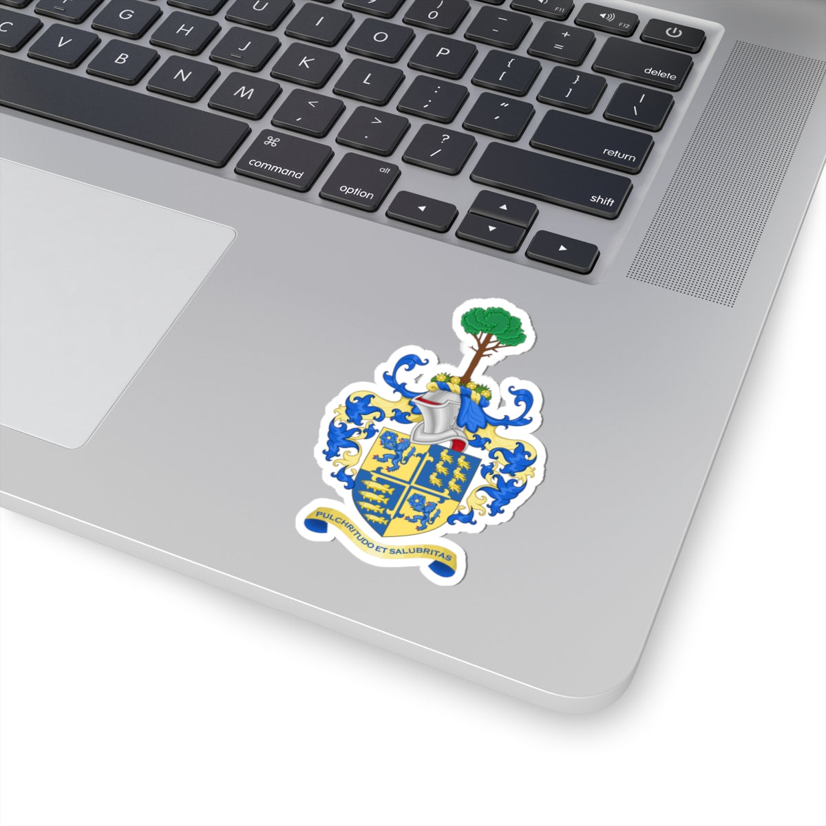 Although not featured on the shield itself, the original coat of arms featured a base of grassy mound and water, indicating the land and sea which comprise the Borough's geography. The motto "Pulchritudo et Salubritas," translating to "Beauty and Health," is a significant aspect of the whole artistic design.