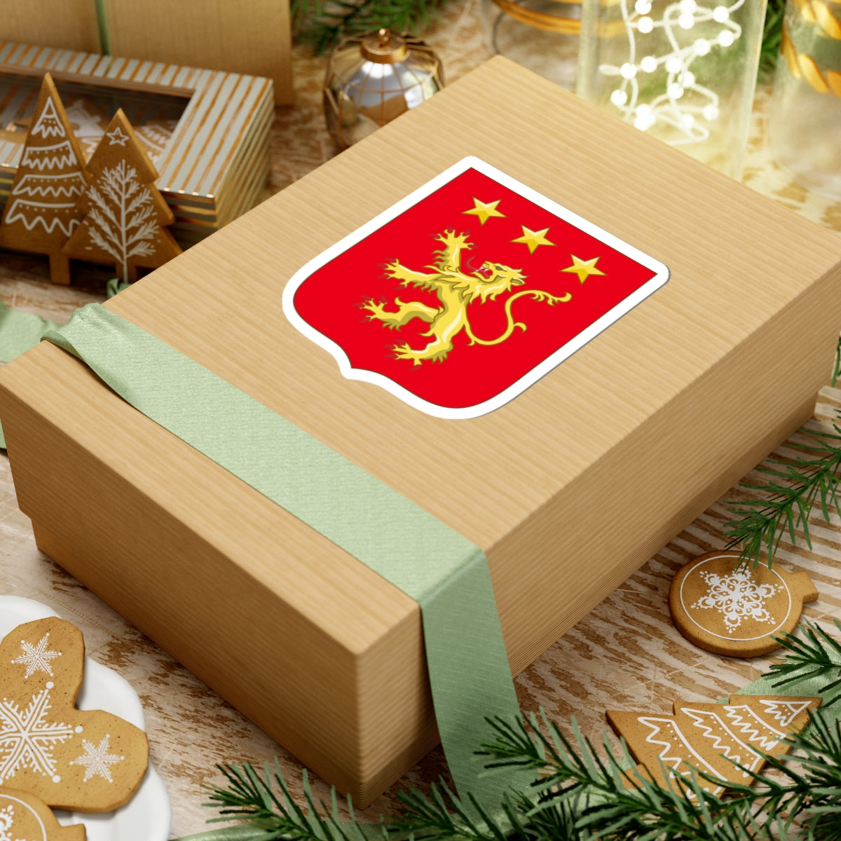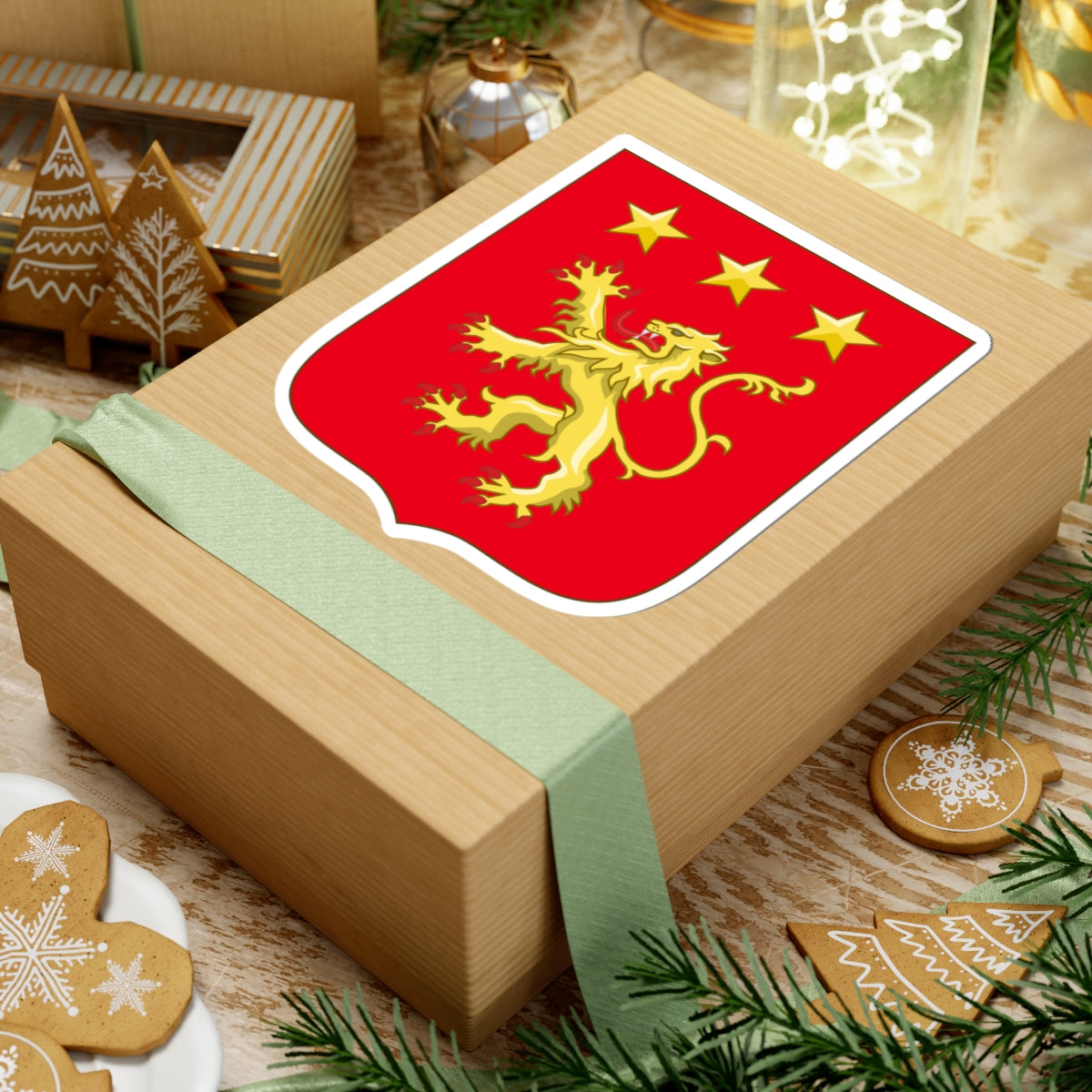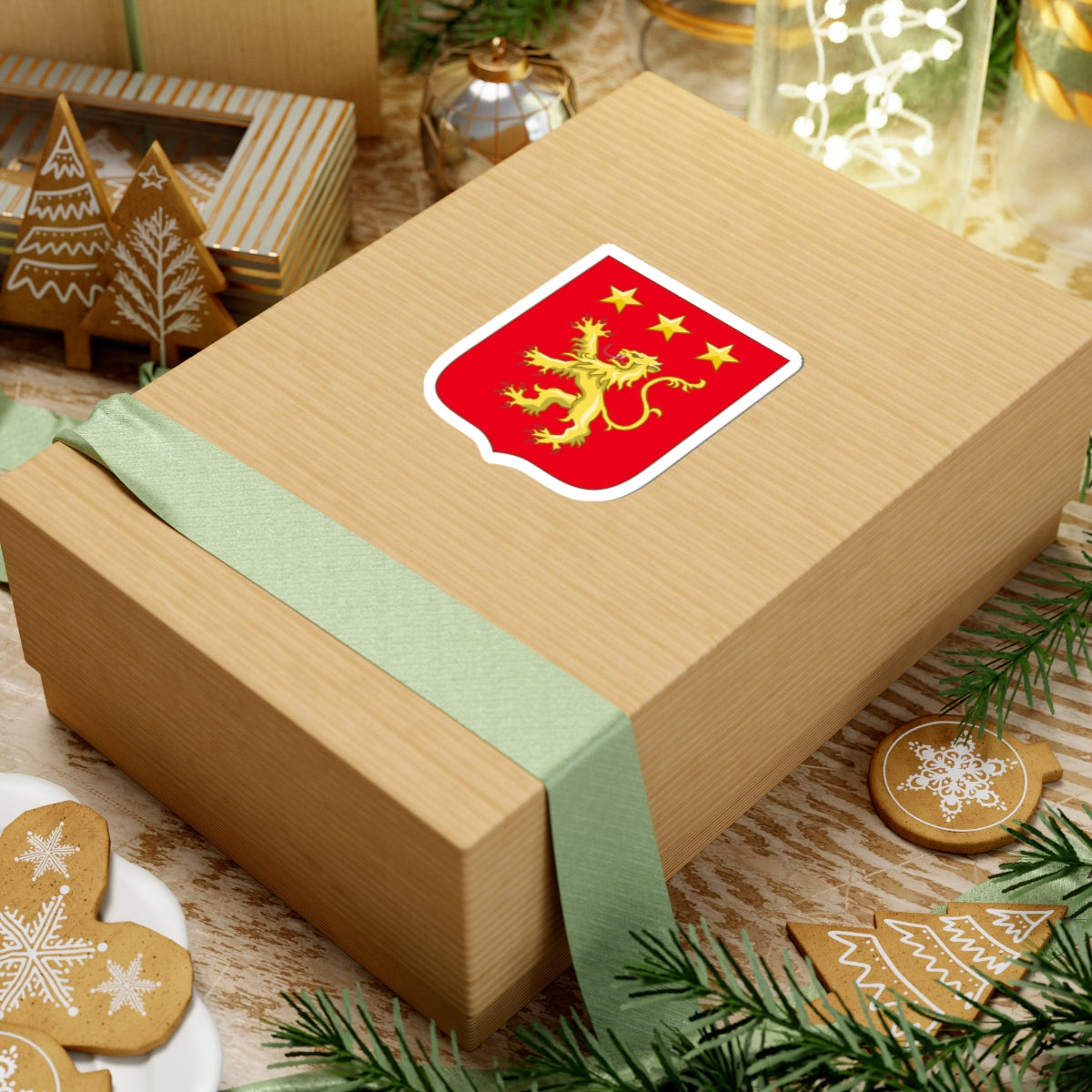 This sticker showcases the majestic Arms of de Laborde de Montpezat, specifically the Danish branch, also known as the House of Monpezat. The design is a beautifully rendered coat of arms, meticulously crafted according to heraldic tradition.