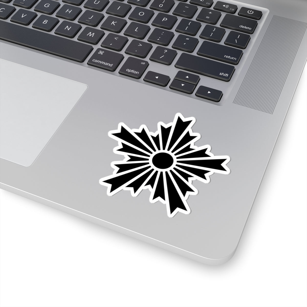 This striking sticker features the Asahikage, a powerful visual emblem from Japan. Rendered in a stark monochrome, the design centers around a bold circle representing the sun, from which numerous rays radiate outward. This stylized depiction of the rising sun captures the essence of its namesake.