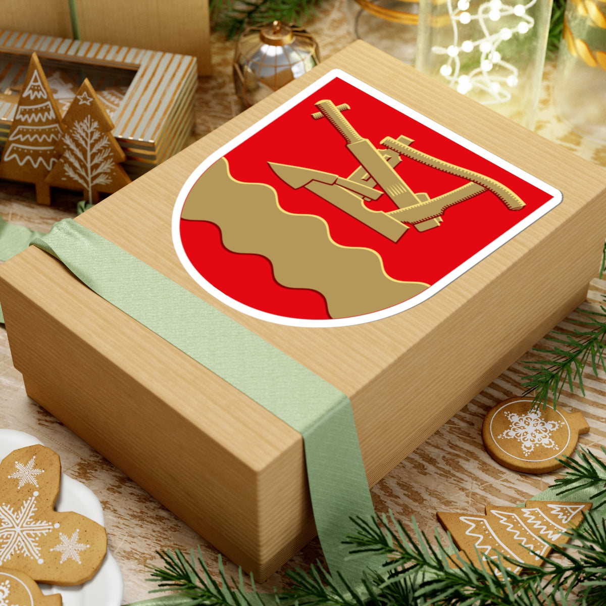 This sticker showcases the official coat of arms of Aura, a municipality in Finland, a striking emblem steeped in local history and symbolism.