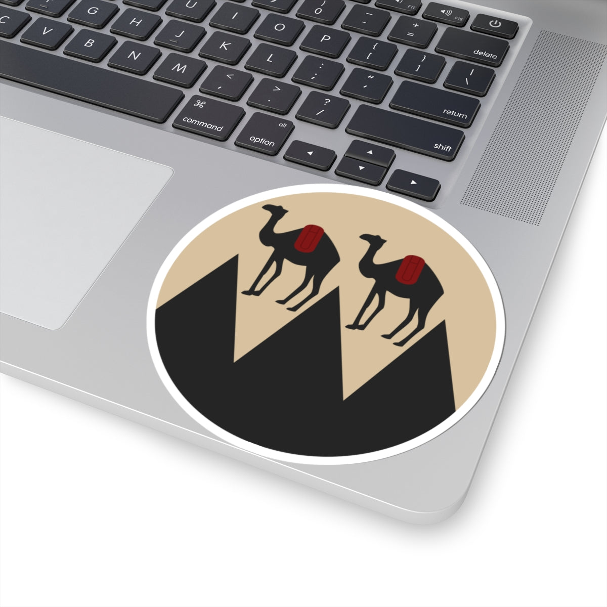 The presence of camels is a direct reference to the region's geographical context. These resilient animals are synonymous with desert environments and speak to the local culture. They stand as a visual representation of endurance and resilience in the face of the challenging terrain.