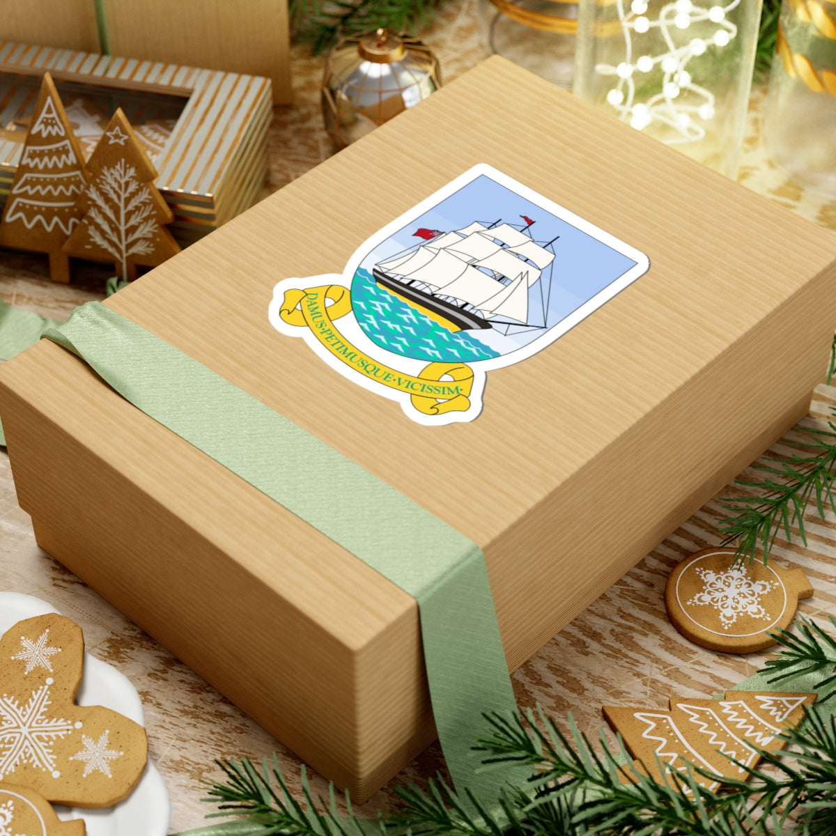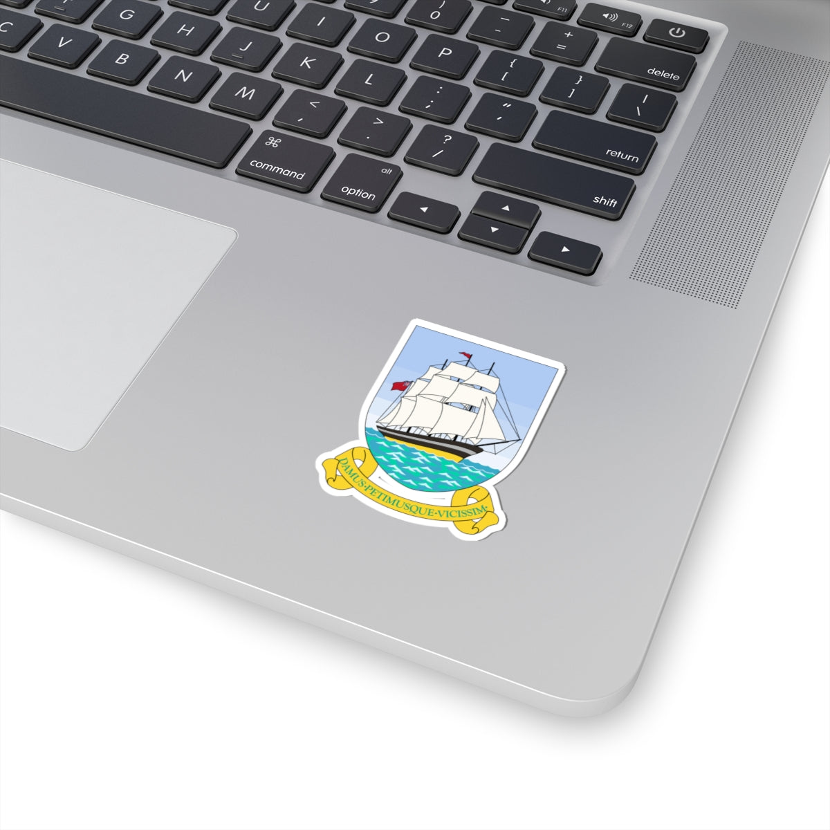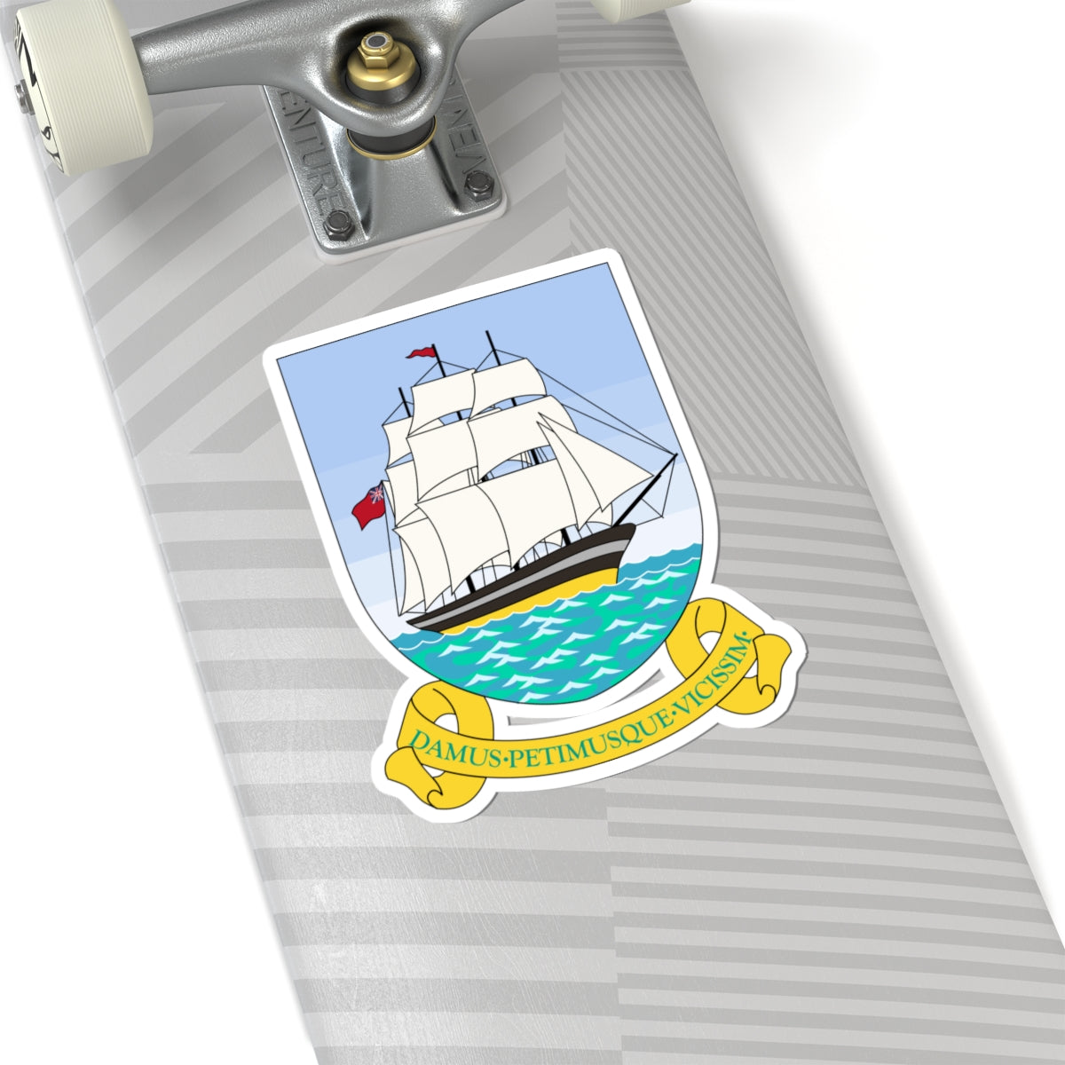 This striking vinyl decal features the historic Coat of Arms of British Guiana, a powerful visual representation of the colony during the late colonial period before Guyana’s independence in 1966. The design is a rich tapestry of symbolism, reflecting the region's industry, natural resources, and aspirations.