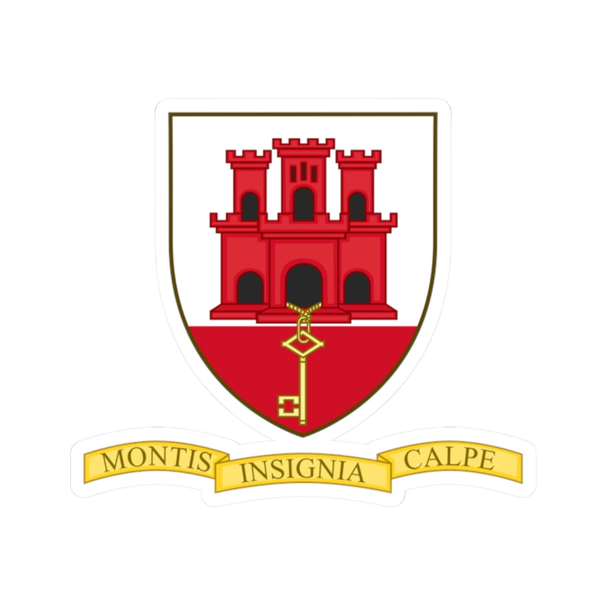 This striking sticker showcases the iconic Coat of Arms of Gibraltar, a powerful heraldic emblem steeped in history and symbolism.