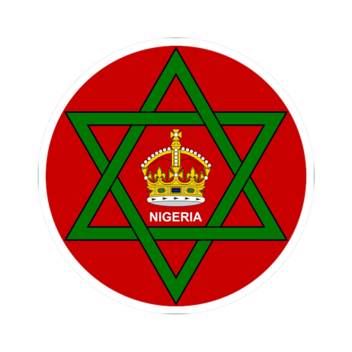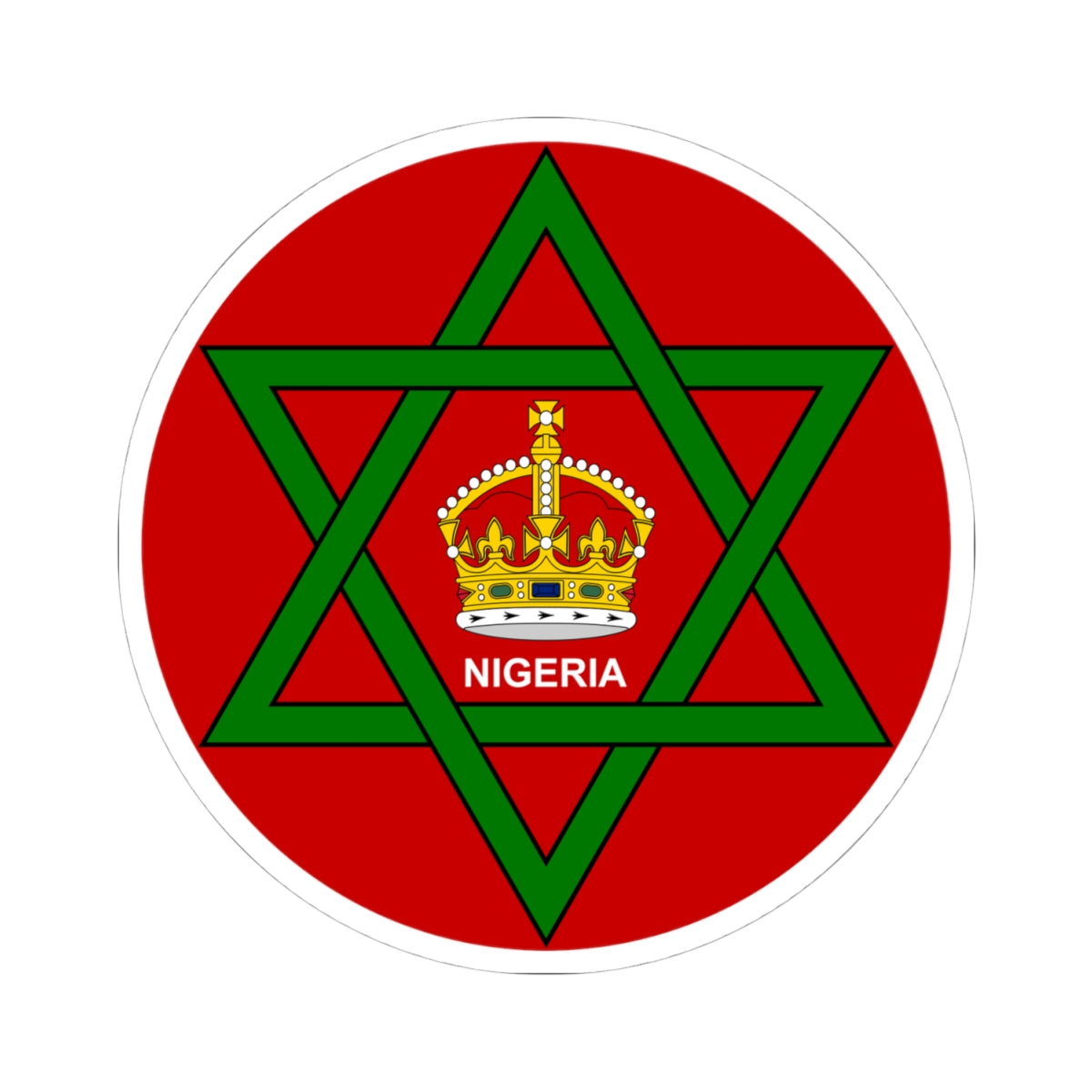 The central visual element is a red disc, serving as the backdrop for the other components. Within this field, a green six-pointed star, formed by two interlaced triangles, dominates the design. This star, sometimes referred to as the "Seal of Solomon," is a significant symbol of the North Nigeria. At the heart of the star sits a British crown, a clear representation of British imperial authority during the colonial era. The word "NIGERIA" is inscribed in white lettering beneath the crown.
