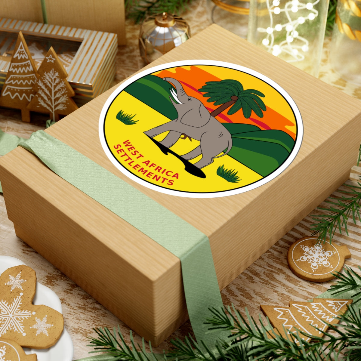 This sticker features a striking design inspired by the Badge of the British West Africa Settlements, used from 1870 to 1888, representing the collective British territories that included what is now Ghana. This historical emblem presents a rich visual narrative of the region.