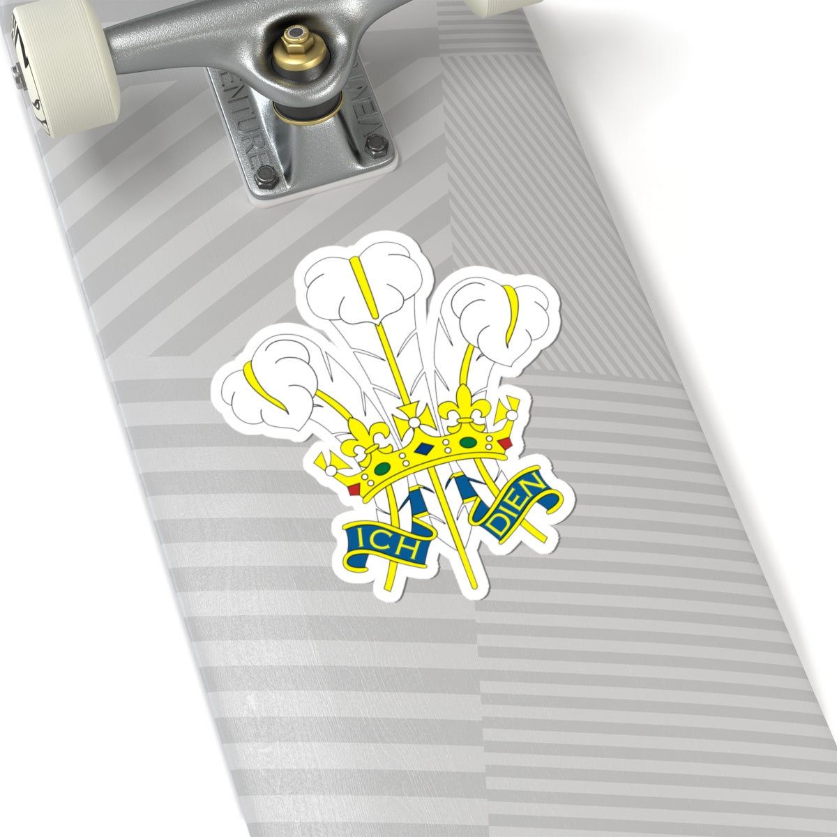 This vinyl decal showcases the iconic Badge of the Prince of Wales, a distinct heraldic emblem steeped in British history and royal symbolism.