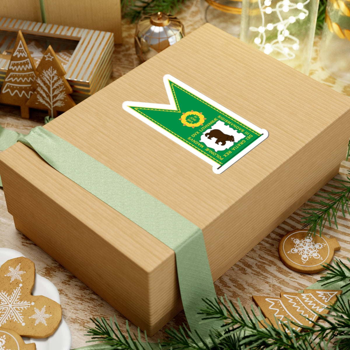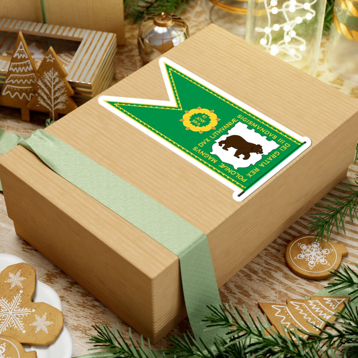 This sticker showcases the historical Banner of Kiev Voivodeship, a fascinating heraldic emblem from the Polish-Lithuanian Commonwealth. The design features a two-sided representation of this significant banner.