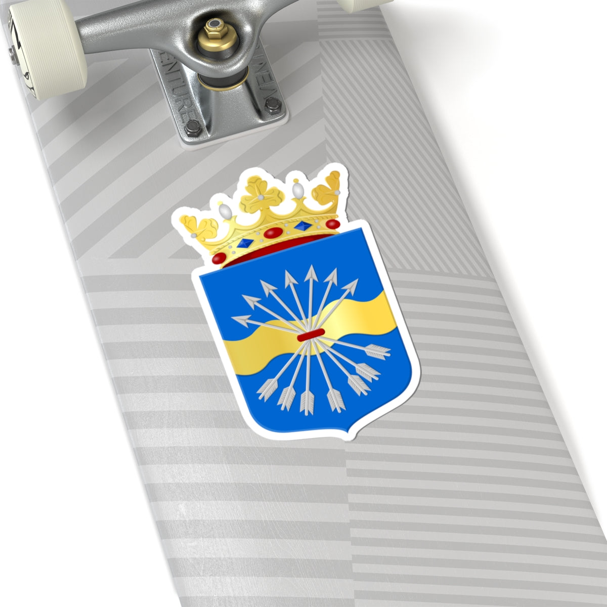 This striking decal showcases the Coat of Arms of Bergen, a symbol of the municipality's rich heritage in North Holland, Netherlands, as adopted in 2016.
