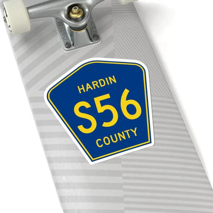 This decal presents a faithful rendition of the Hardin County Route S56 road sign, a key identifier within Iowa's county road system. The design is a direct representation of the official signage used to mark this specific route.
