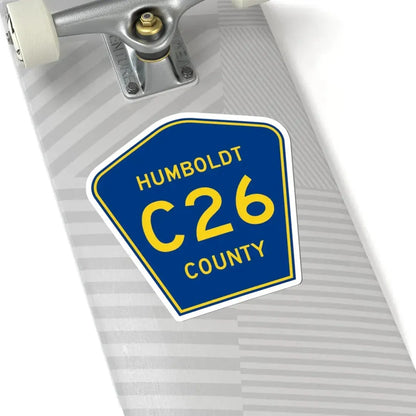 This sticker presents a stylized representation of the Humboldt County Route C26 road sign. The design echoes the familiar shape and visual language of official road signage, instantly conveying a sense of place and direction.