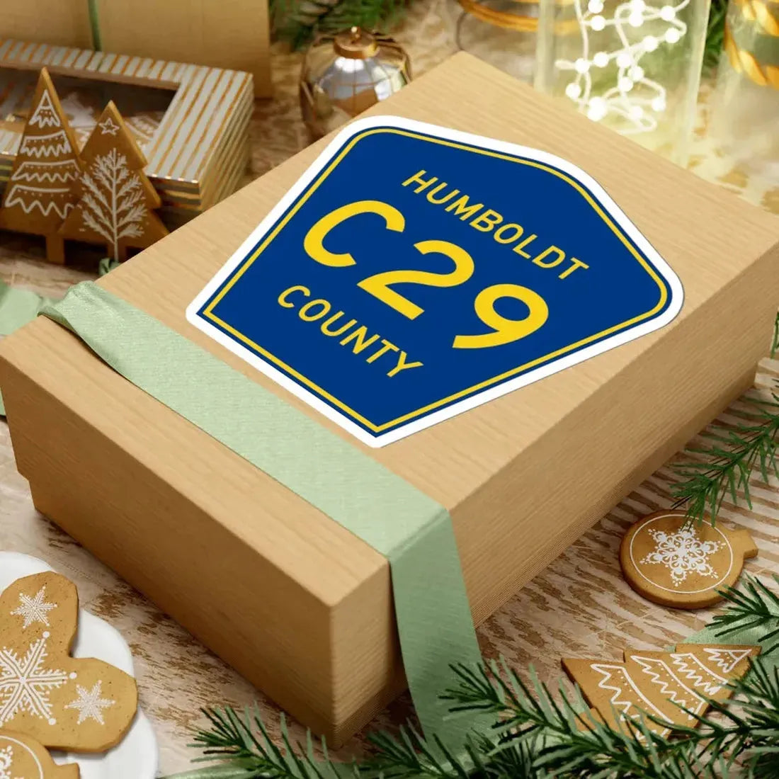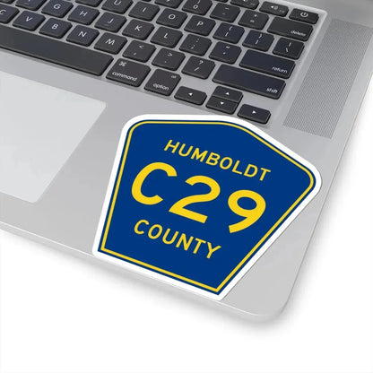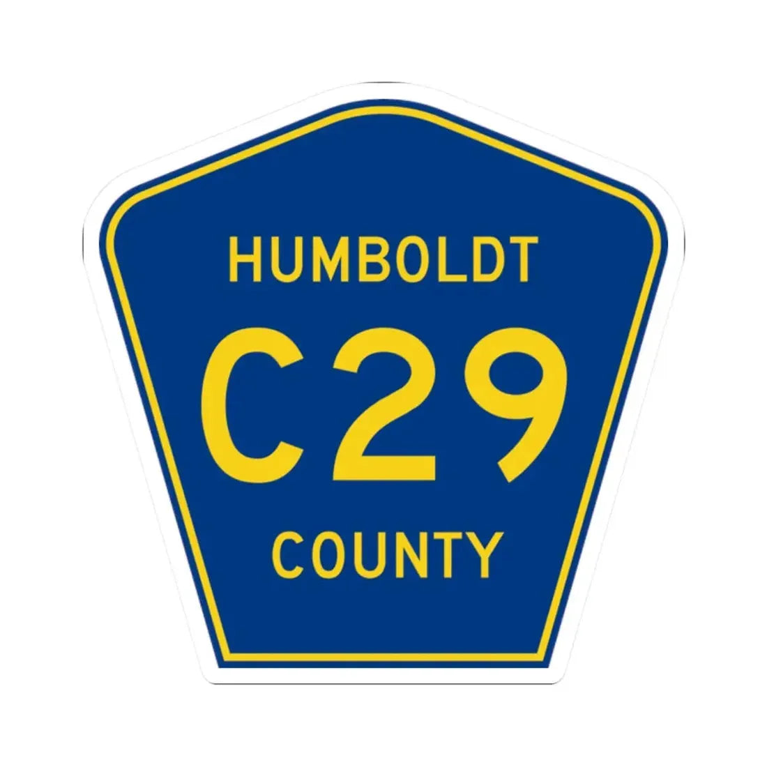 This sticker features a visually arresting representation of Humboldt County Route C29 in Iowa, designed to capture the essence of this scenic roadway. The artwork cleverly mimics the classic road sign aesthetic, instantly recognizable to anyone familiar with American roadways and travel.