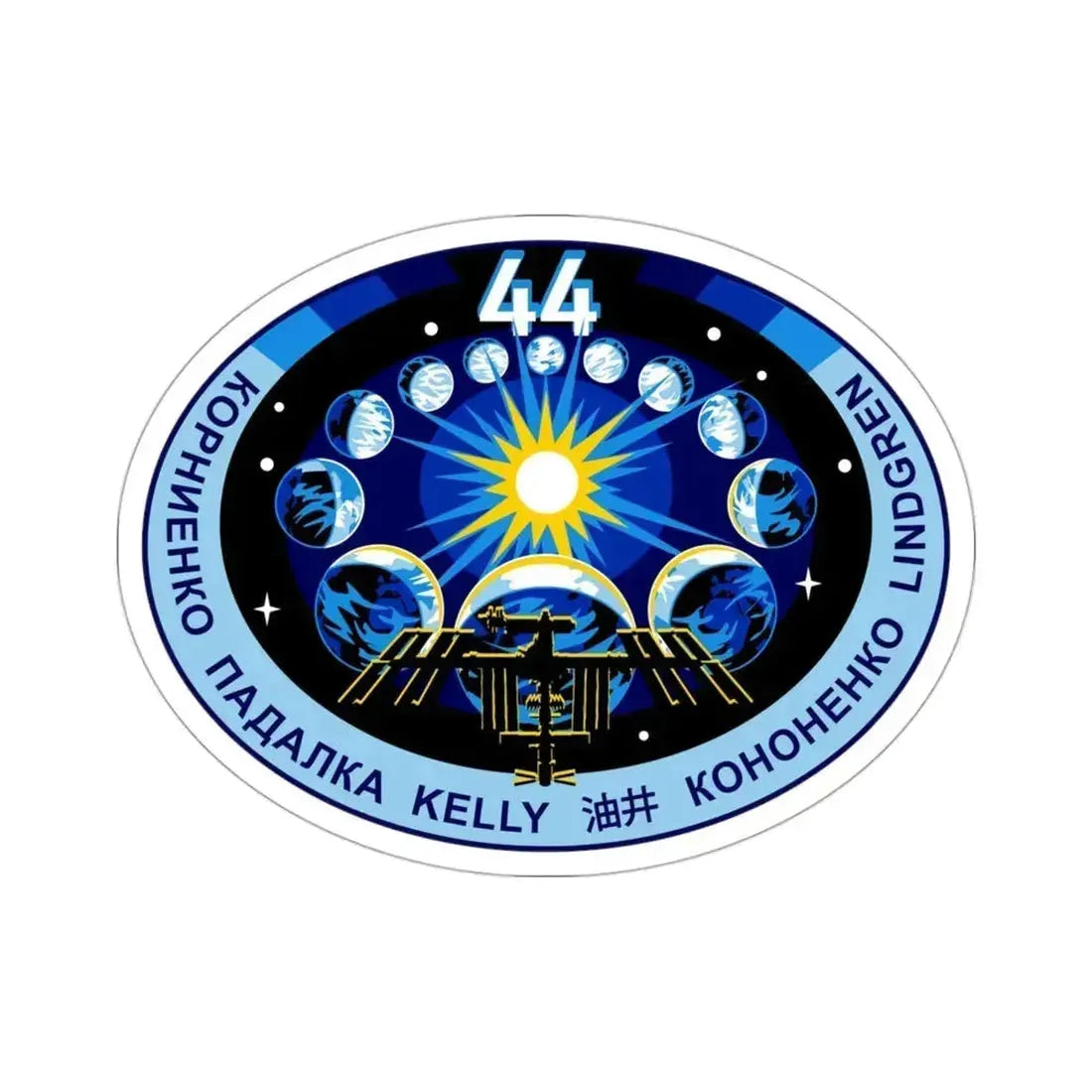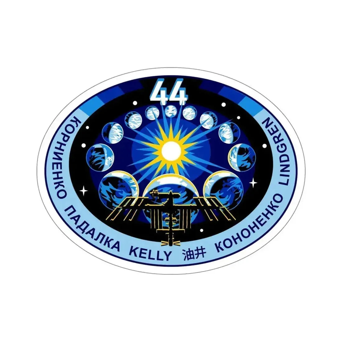 This die-cut vinyl decal captures the spirit of the ISS Expedition 44 mission, a testament to international collaboration and scientific endeavor in space.