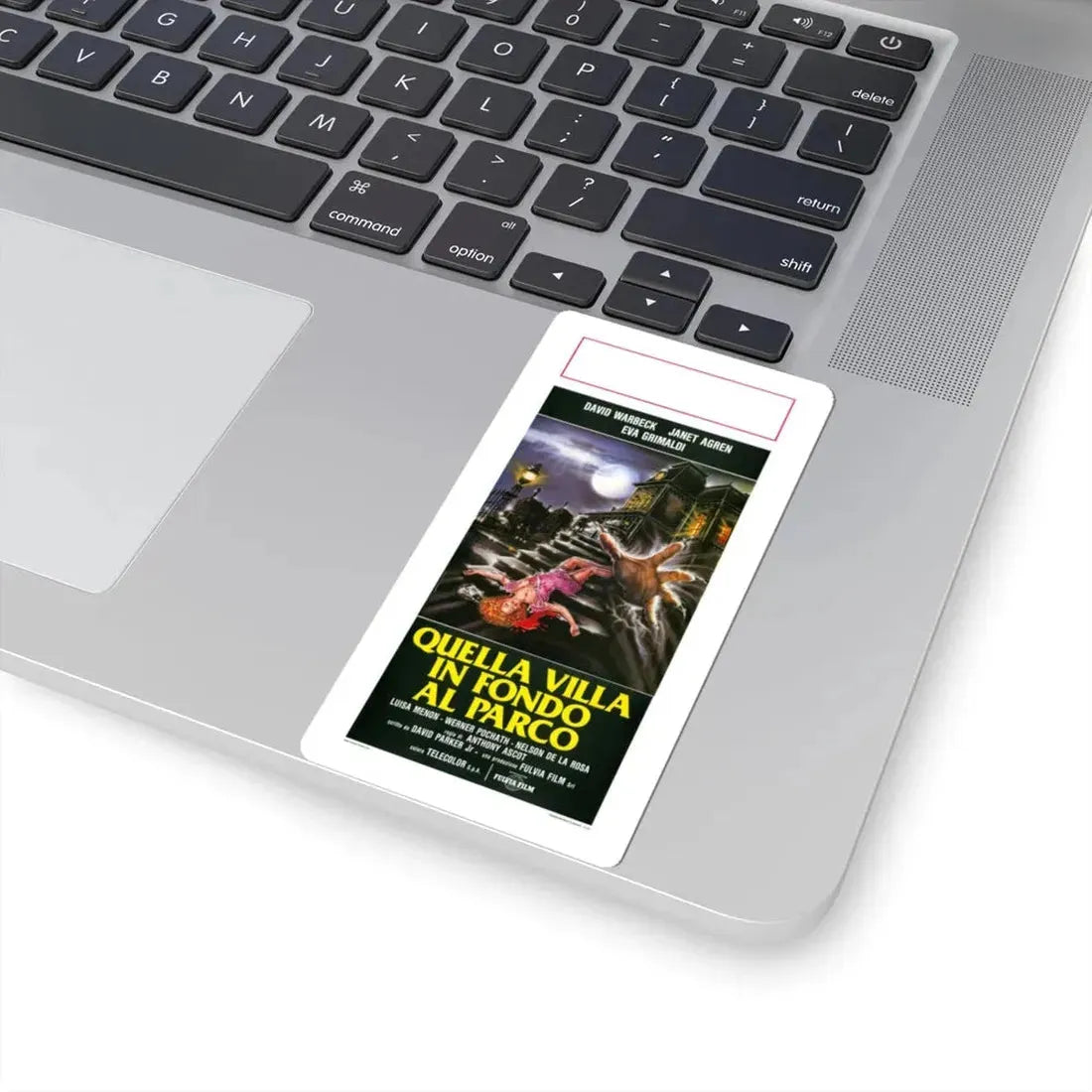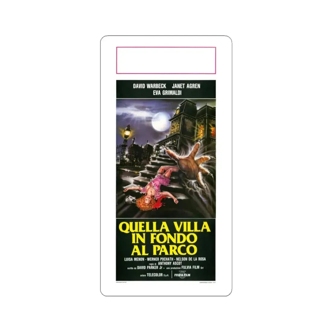 This sticker decal showcases the iconic artwork of the 1988 Italian horror film, "Ratman" (Quella villa in fondo al parco). The design is a direct reproduction of the film's original promotional poster, instantly recognizable to fans of Italian exploitation cinema.